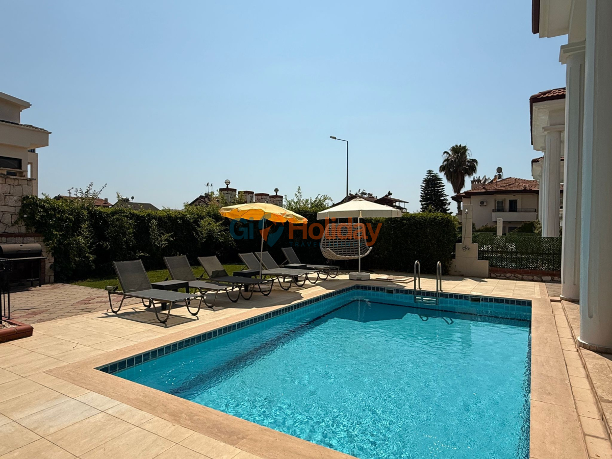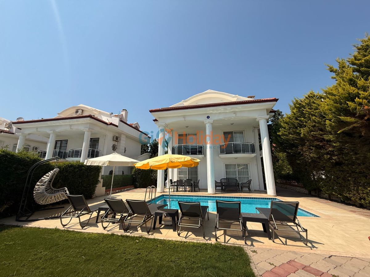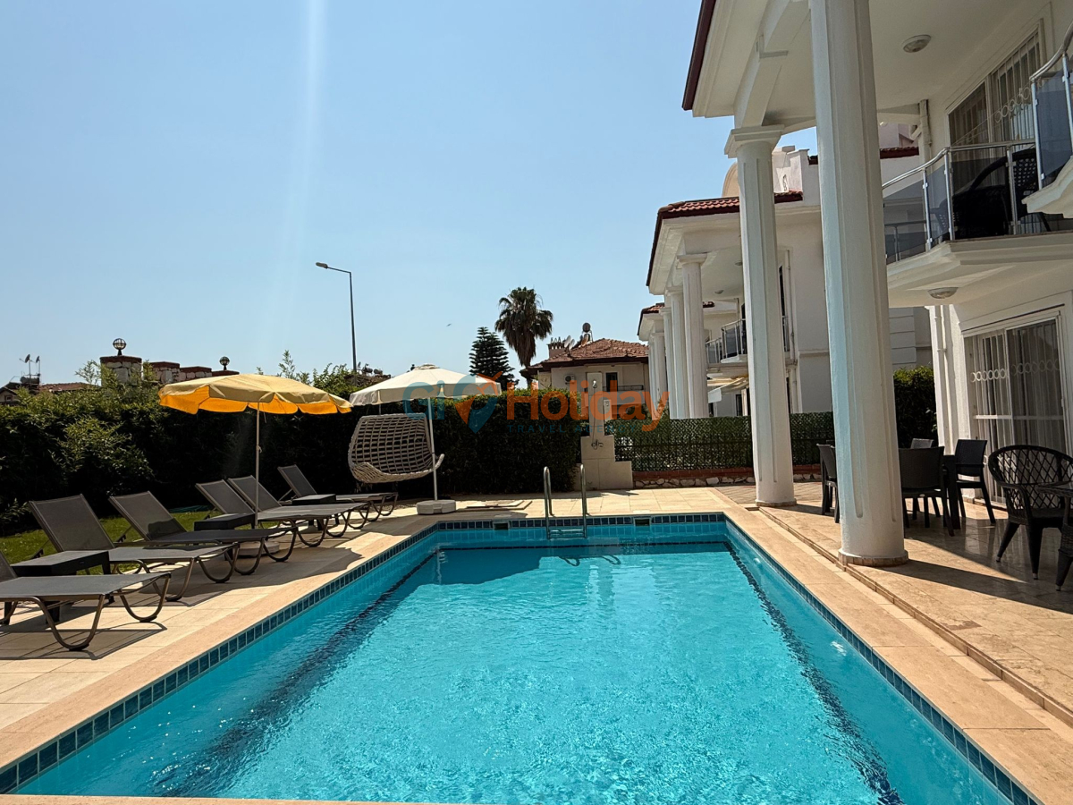 Fethiye Çalış mevkiinde konumlandırılan villamız 3 yatak odası, 2 açılabilir ek yatak ve 2 açılabilir kanepesiyle birlikte 10 kişilik konaklama kapasitesi sunmaktadır. Kısmi korunaklı havuz alanına sahip villamız kalabalık aile ve gruplar için ideal seçeneklerden bir tanesidir. Dış mekanda kapasiteye uygun özel yüzme havuzu, şezlong takımları ve yemek masası yer almaktadır. Market ve restaurant ulaşımı da oldukça rahat olan villamız Fethiye tatilinizde en güzel hatıralarınıza ev sahipliği yapacaktır.