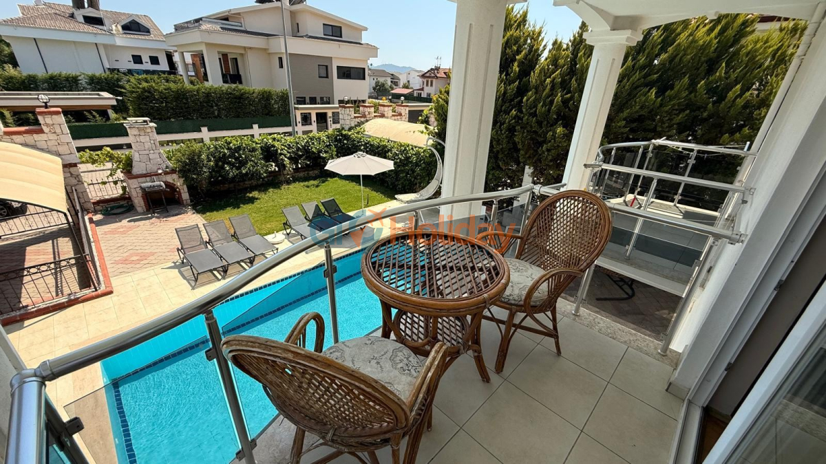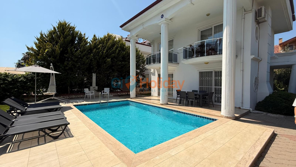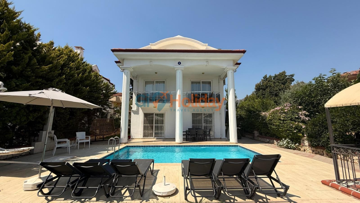 Fethiye Çalış mevkiinde konumlandırılan villamız 3 yatak odası, 2 açılabilir ek yatak ve 2 açılabilir kanepesiyle birlikte 10 kişilik konaklama kapasitesi sunmaktadır. Kısmi korunaklı havuz alanına sahip villamız kalabalık aile ve gruplar için ideal seçeneklerden bir tanesidir. Dış mekanda kapasiteye uygun özel yüzme havuzu, şezlong takımları ve yemek masası yer almaktadır. Market ve restaurant ulaşımı da oldukça rahat olan villamız Fethiye tatilinizde en güzel hatıralarınıza ev sahipliği yapacaktır.